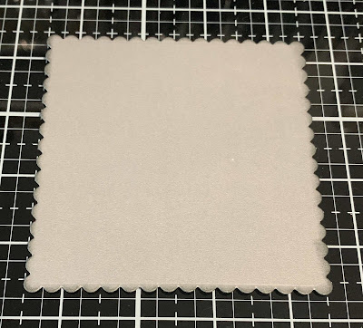 Die cut the scalloped square out of Pewter Soft Finish Cardstock. Ink the edges of square using Black Soot Distress Ink and a blending tool with foam.
